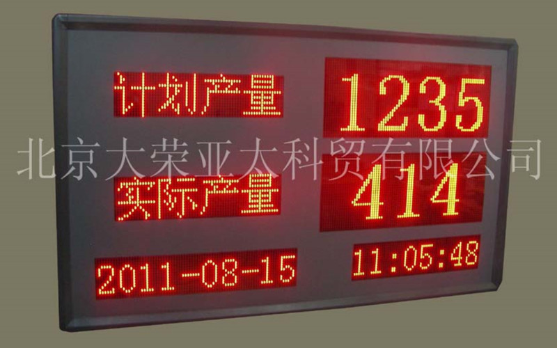 矩陣式電子看板,無需電腦輸入??涩F場采集信號,自動顯示實際產量。也可增加差異等其它數據。定做